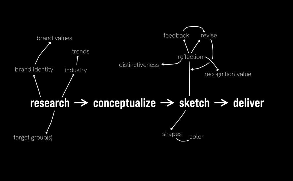 Wenn die strategische Grundlage steht, können verschiedene Skizzen und Ideen durchgespielt werden. In dieser Phase geht es explorativ zu. So entstehen wirklich neue und originelle Ansätze, die zusätzlich zur Markenidentität passen. Der Prozess ist iterativ – immer wieder werden neue Ideen generiert, mit anderen kombiniert, verworfen und wieder neu konzipiert. Die vorhergehende Recherche und Konkurrenzanalyse hilft auch, zu vermeiden, dass das Logo zu nah an bestehenden Logos anderer Marken liegt. Weitere Infos zum Brand Research hier. Ein übergeordnetes Ziel ist nämlich, sich von der bestehenden Masse an Marken abzuheben. So kann ein Wiedererkennungswert entstehen.